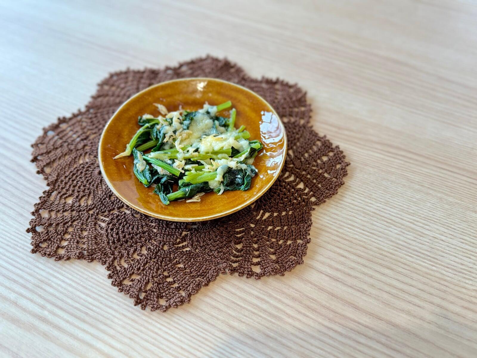 干しエビと小松菜のチーズ焼き